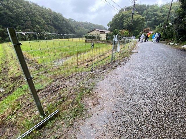 今回は資材納入後に、施工指導という形で受益者の皆様と共に柵設置及び