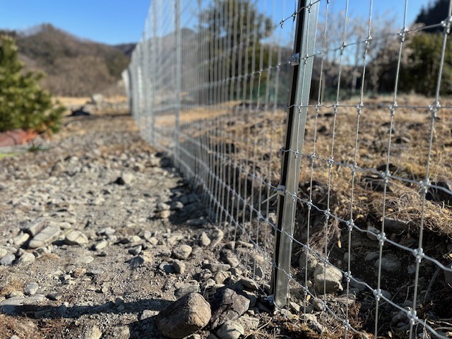 あとは門扉を設置後金網を繋ぎ込んで完成となります。